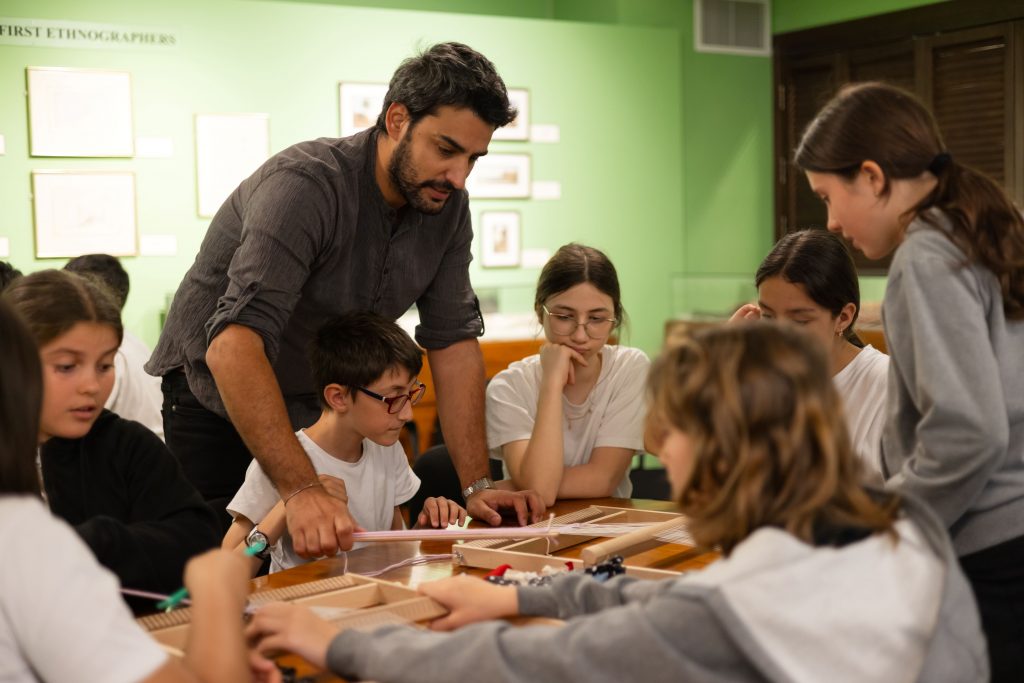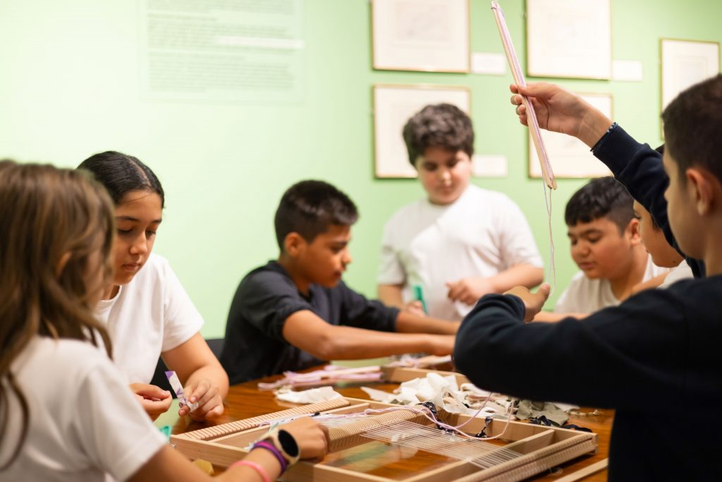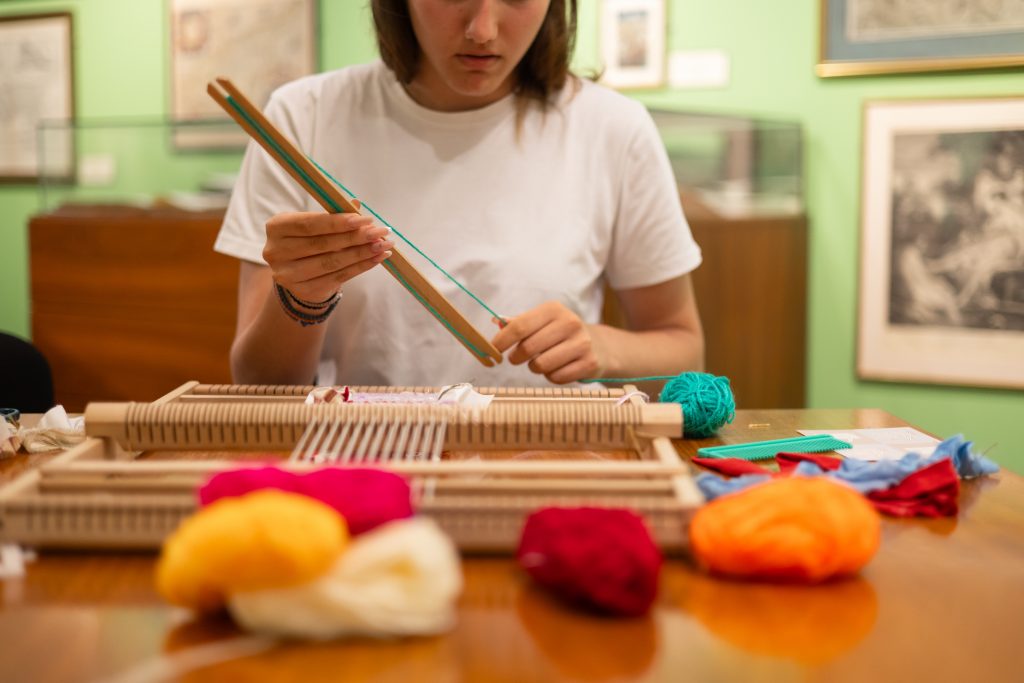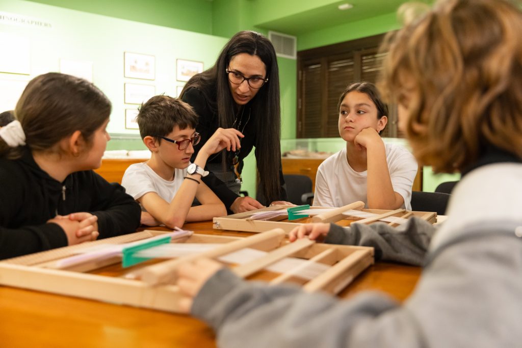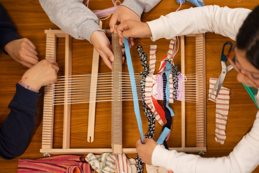 Elli Filokyprou, a weaver of over 20 years of experience, who runs her weaving workshop in the village of Gourri, taught the children master classes of actual weaving on small transportable looms, and helped them create their own pieces of fabric with traditional colourful patterns.