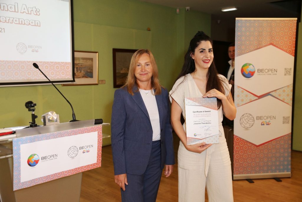BE OPEN Art held an awards ceremony a week into the exhibition, to celebrate the Artist of the Region Jovanna Theodosiou. The exhibition was attended by artists and their families, representatives of Cyprus’s Ministries of Education and Culture, Nicosia municipality, members of academic, artistic and business communities, guests of the island, etc.