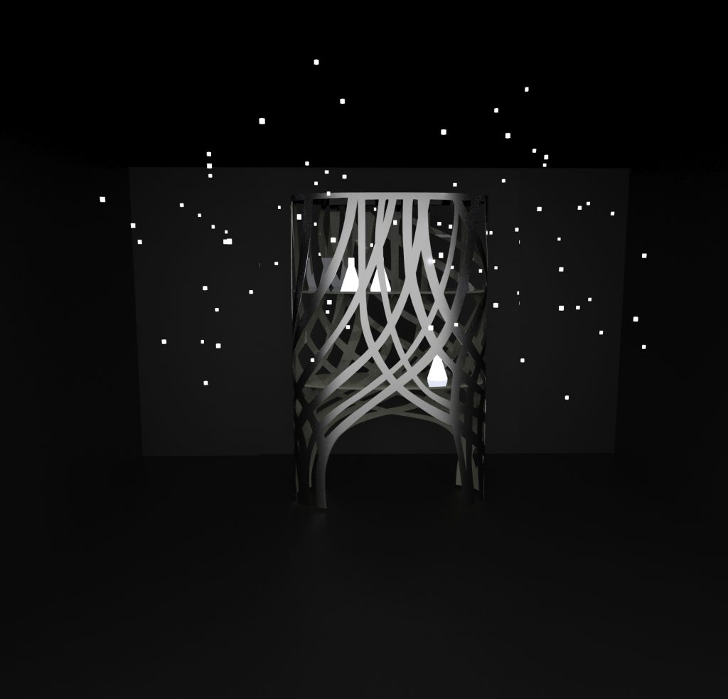 The mysteriously double walled bottle inspired us to create a bottle with an unexpected inside, it will be lit up from within. We have also made a light installation in the room made from hundreds of tiny light dots like fireflies that will visualise the ephemerality of scent.”