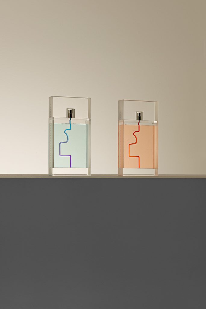 So we decided to create a new bottle outlining its silhouette with a tube inside. The tubes come in two types, one is a gradation of cold colours and the other is a gradation of warm colours. The perfume bottles are named respectively “Fandango -12.3 ºC” and “Fandango +23.1 ºC”, to suggest the average temperatures of the winters and summers in Moscow where Koehler used to be.