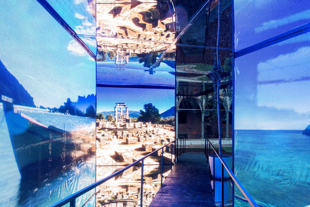 Studio Azzuro was founded in 1982, the pioneer days of video, by Fabio Cirifino with Leonardo Sangiorgi and Paulo Rosa. Their image edit for ‘The House of the Senses’ resulted in a whirlwind of spectacular and luminous visuals which led the viewer on an emotional and sensorial journey, even while standing still. The effect of the screened images, set at asymmetrical angles and reflected also from the floor and ceiling, was a sensational recollection without detail.