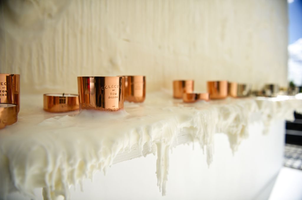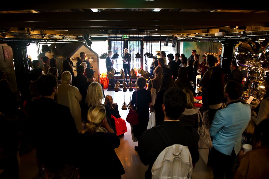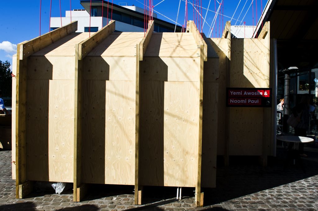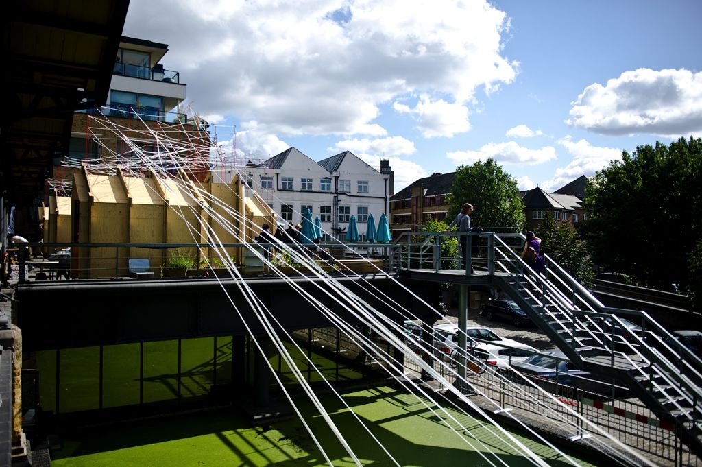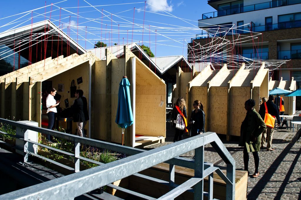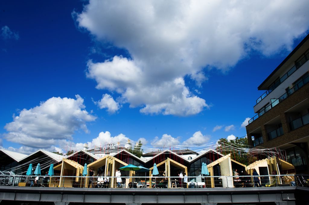 Pan Studio and Jail-Make created a site-specific installation on the Dock terrace that referenced the medieval trade markets and Florence’s Ponte Vecchio, populating the terrace with 8 self-contained wooden huts that mirrored the architecture of the converted wharf building that houses Dock Kitchen Restaurant. The installation incorporated the water with a plethora of luminous ribbons cascading from the rooftops to the waters beneath. Each hut showcased exclusive works by an exciting mix of emerging designers.