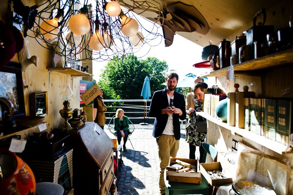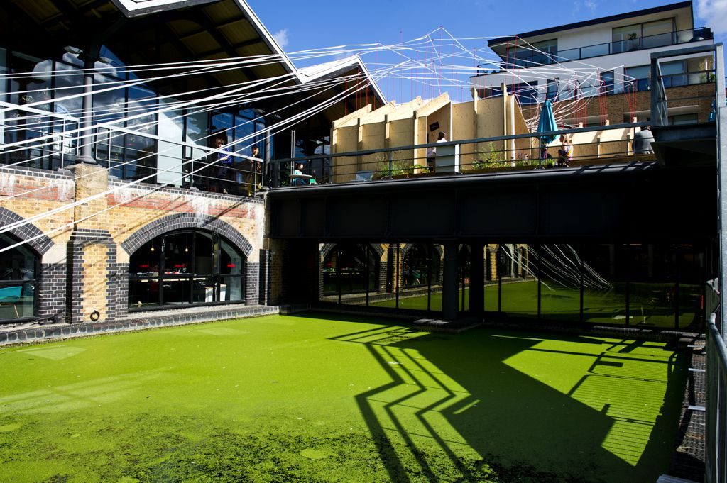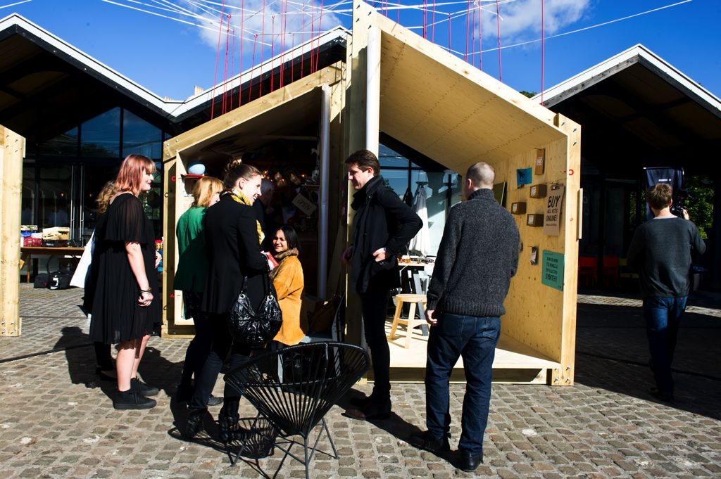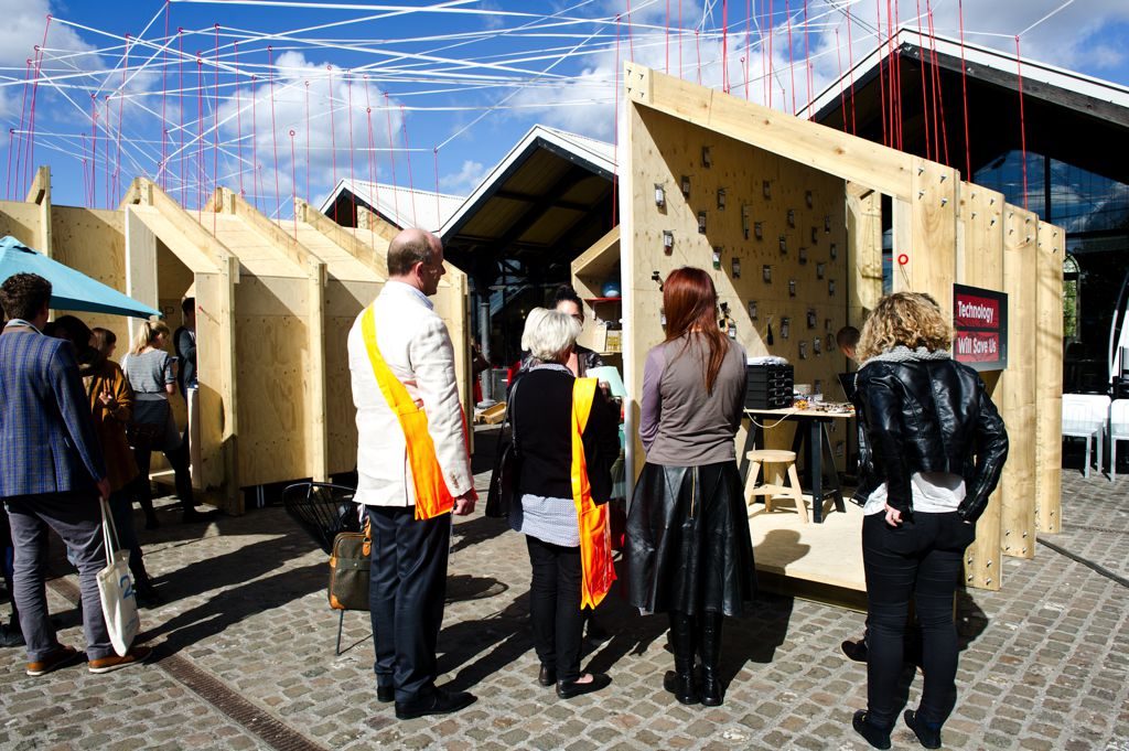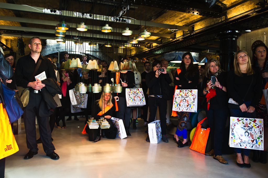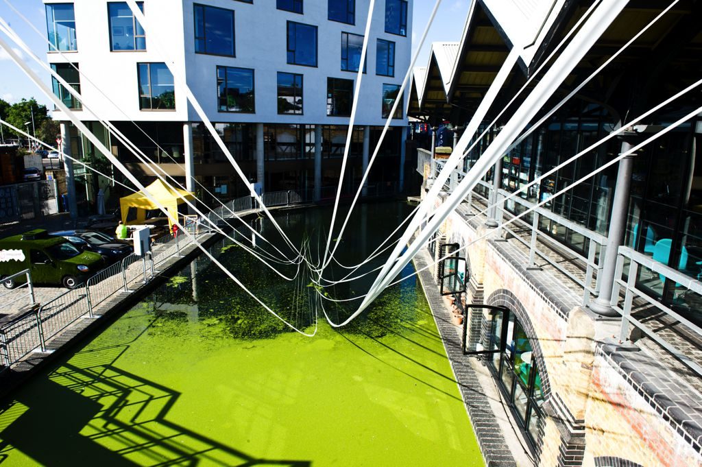 Pan Studio and Jail-Make created a site-specific installation on the Dock terrace that referenced the medieval trade markets and Florence’s Ponte Vecchio, populating the terrace with 8 self-contained wooden huts that mirrored the architecture of the converted wharf building that houses Dock Kitchen Restaurant. The installation incorporated the water with a plethora of luminous ribbons cascading from the rooftops to the waters beneath. Each hut showcased exclusive works by an exciting mix of emerging designers.