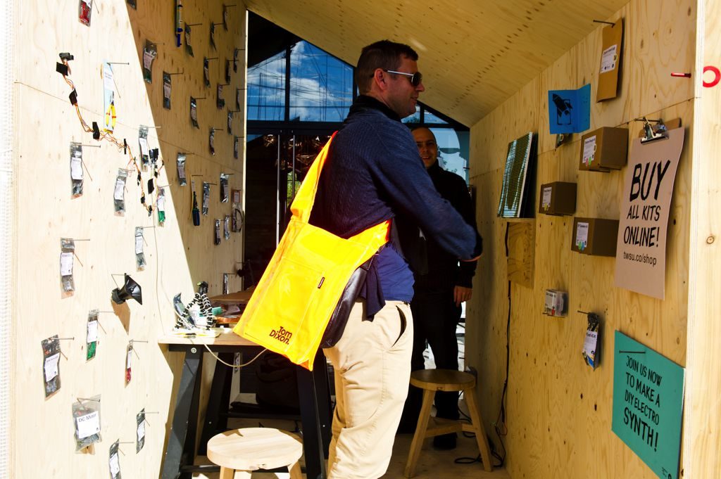 Old-school bleeps emanating from the build-your-own-synth were set up by London solderers Technology Will Save Us, but were ultimately lured away by the textile-inspired works of Bricolage designers Yemi Awosile and Naomi Paul. People loved the earth-toned geometric print on Awosile’s cork wallhanging and Paul’s hand-crocheted, mercerised-cotton Hanna lampshades. Visitors were also introduced to the Finland-meets-India woven crafts by Helsinki-based Tikau.